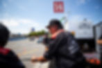 Easley holds out the "lollipop" to signal Santino where to stop to hit his marks in the pit box during practice and the race.